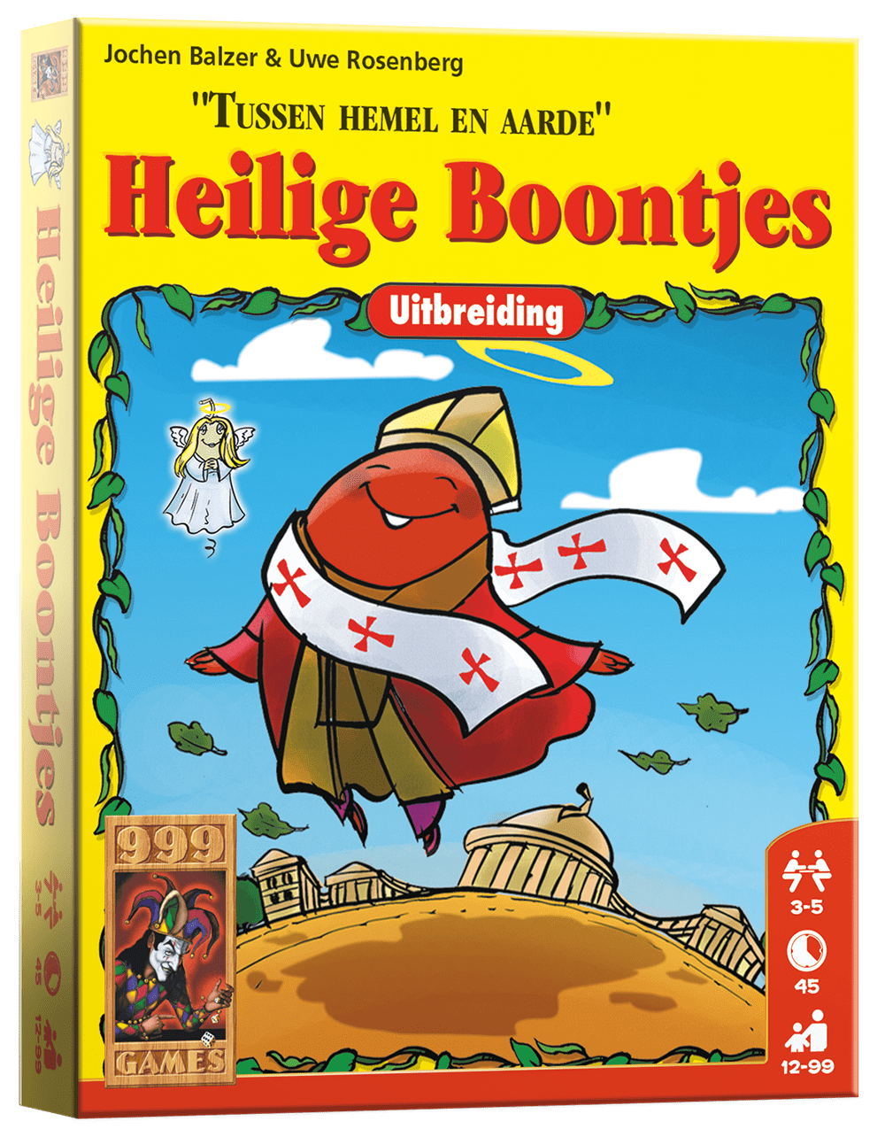 Breng meer spiritualiteit in Boonanza met de uitbreiding Heilige Boontjes! Deze uitbreiding komt met nieuwe bonenvelden, een nieuwe bonensoort en speciale regels zoals goddelijke boodschappen en offerkaarten. De Heilige Boontjes zorgen voor meer uitdaging en variatie in de bonenhandel. Wie scoort de meeste munten tussen hemel en aarde?