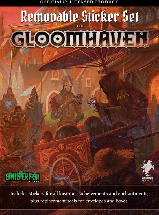 Met deze stickers kun je Gloomhaven herspeelbaar maken. Door de stickers van vinyl die geen lijm achterlaten op het speelbord kun je het spel re-setten zodat je het met meerdere groepen kan spelen, eventuele foutjes kan herstellen en het eventueel doorverkopen nadat je uitgekeken bent op het spel. Er zitten stickers bij voor alle locaties, prestaties en verbeteringen. Er zitten zelfs nieuwe zegels bij voor de karakters.