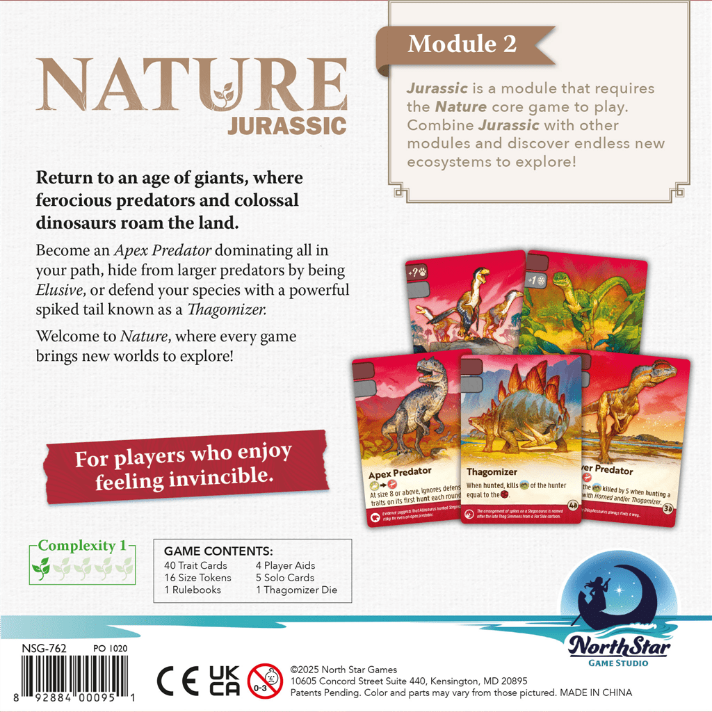 Nature: Jurassic Expansion is een spannende uitbreiding op het populaire bordspel Nature, waarin de prehistorische wereld tot leven komt. Met deze uitbreiding voeg je iconische dinosaurussen en nieuwe kaartmechanismen toe aan het basisspel, waardoor elke speelronde nog dynamischer en strategischer wordt.
