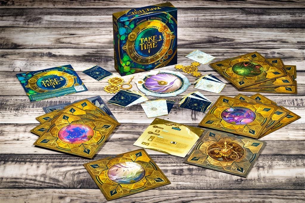 Take Time is een coöperatief kaart- & puzzelspel waarin spelers samen moeten werken om rond de klok unieke uitdagingen te volbrengen.