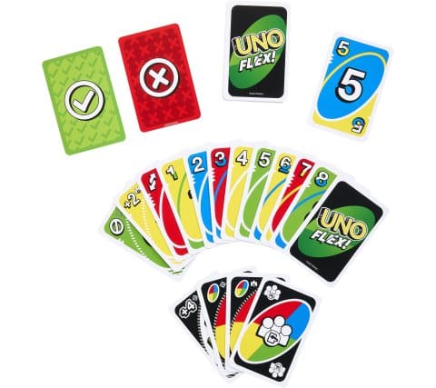 Het kaartspel UNO FLEX is gebaseerd op het bekende en populaire kaartspel UNO, maar kan flexibeler worden gespeeld. Met speciale kaarten kunnen de spelers de kleur van een kaart veranderen om deze te spelen, zelfs als de eigenlijke kleur niet overeenkomt!